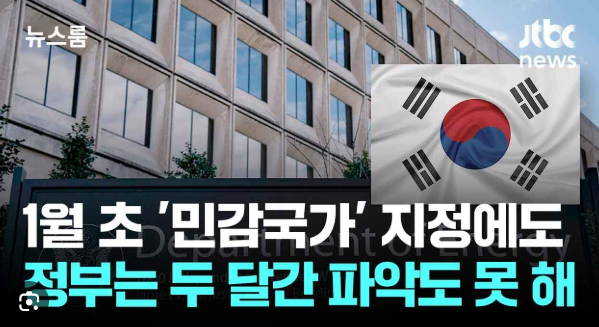 미국이 한국을 민감국가로 지정한 지 두 달이 지나서야 이 사실을 확인한 정부의 대응도 큰 비판을 받고 있습니다. 공식 채널을 통한 소통이 없었고, 정부는 언론 보도를 통해 뒤늦게 이 사실을 알았습니다.