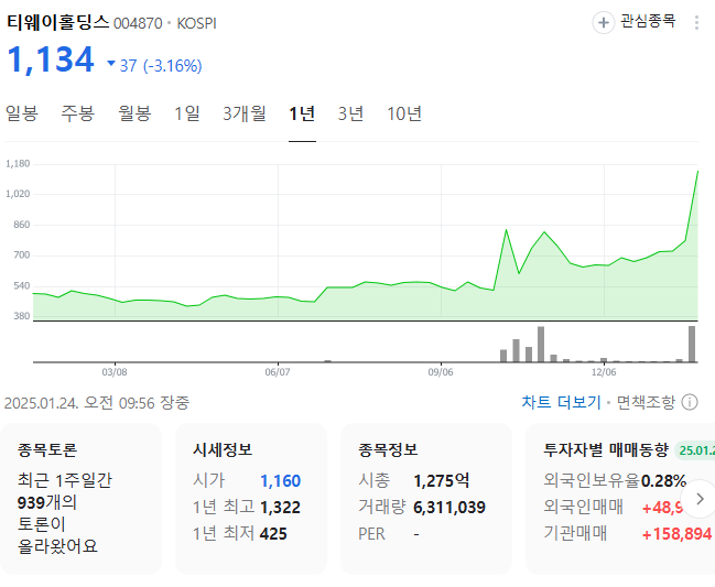 경영권 분쟁 소식은 티웨이홀딩스의 주가에 큰 변동을 일으켰습니다. 아래는 최근 주가 변화의 주요 흐름입니다: